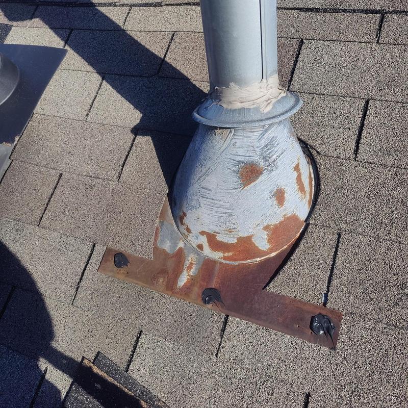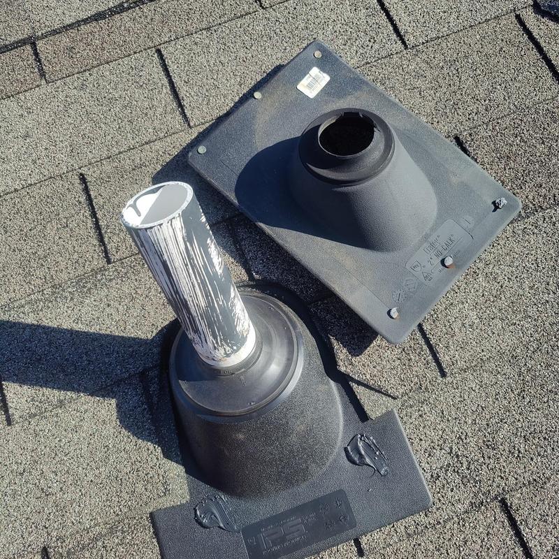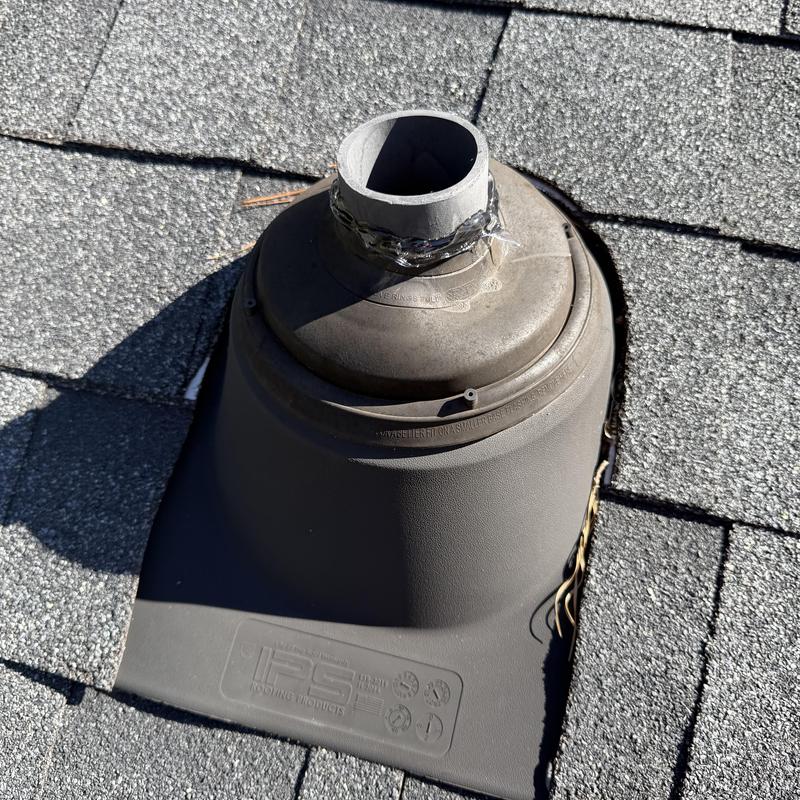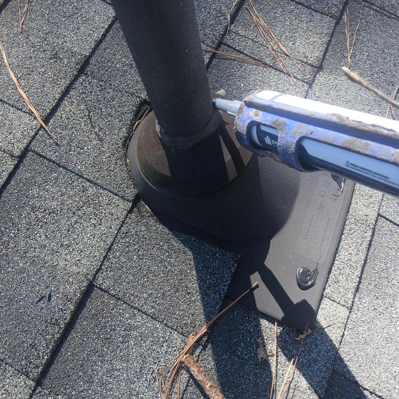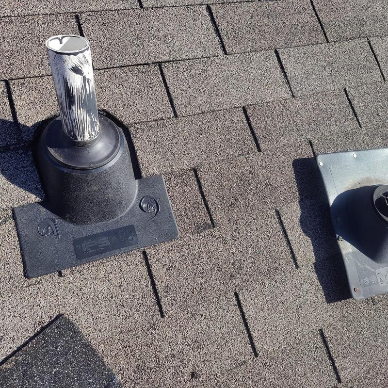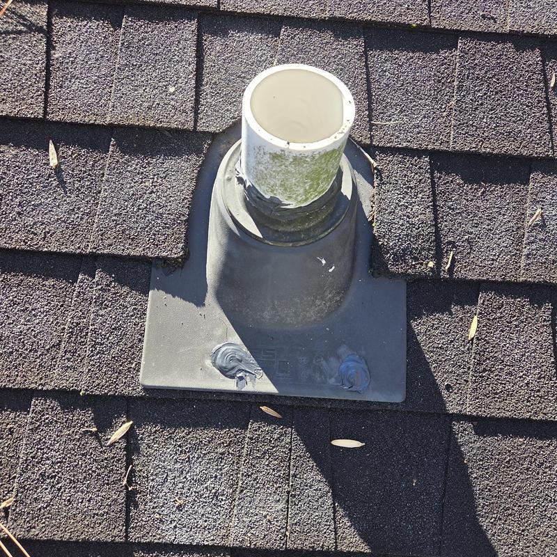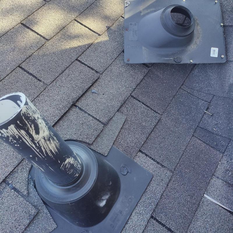 Empire Roofing and Restoration replaced two deteriorated pipe boots and sealed mechanical components on a residential roof in Marietta, Georgia, ensuring waterproof integrity and preventing future leaks during seasonal rains.