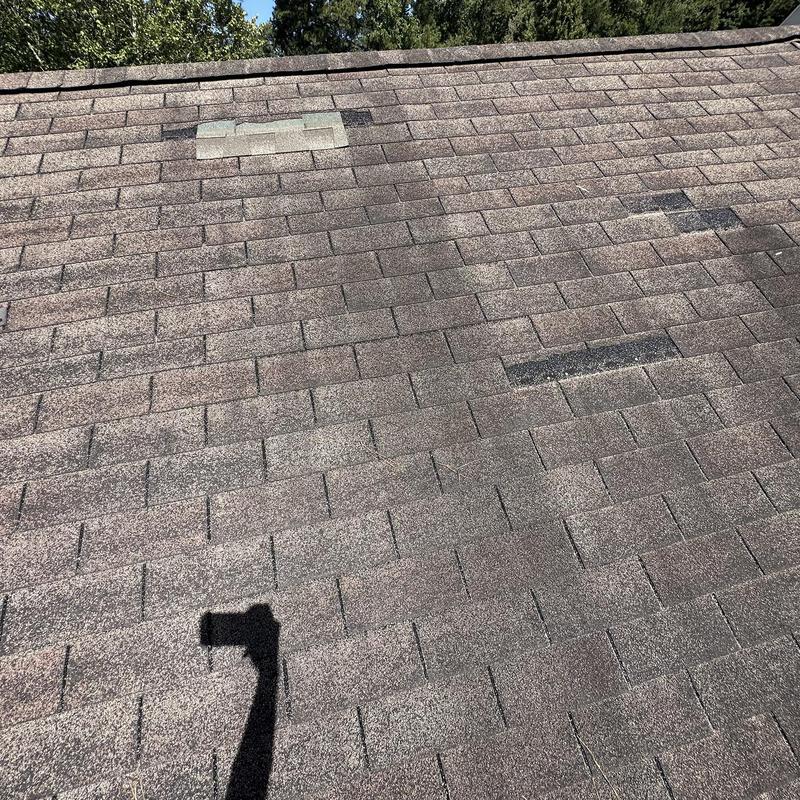 Empire Roofing and Restoration replaced missing shingles on a residential roof in Loganville, Georgia, enhancing structural integrity and preventing water intrusion during rainy seasons. This repair restored full roof functionality, extending lifespan and safeguarding the home against weather damage.