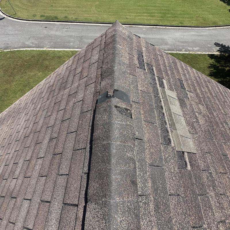 Empire Roofing and Restoration sealed pipe boots and covered exposed ridge cap nails on a roof in Marietta, Georgia. This service improved weather resistance by preventing water from entering through critical roof points.
