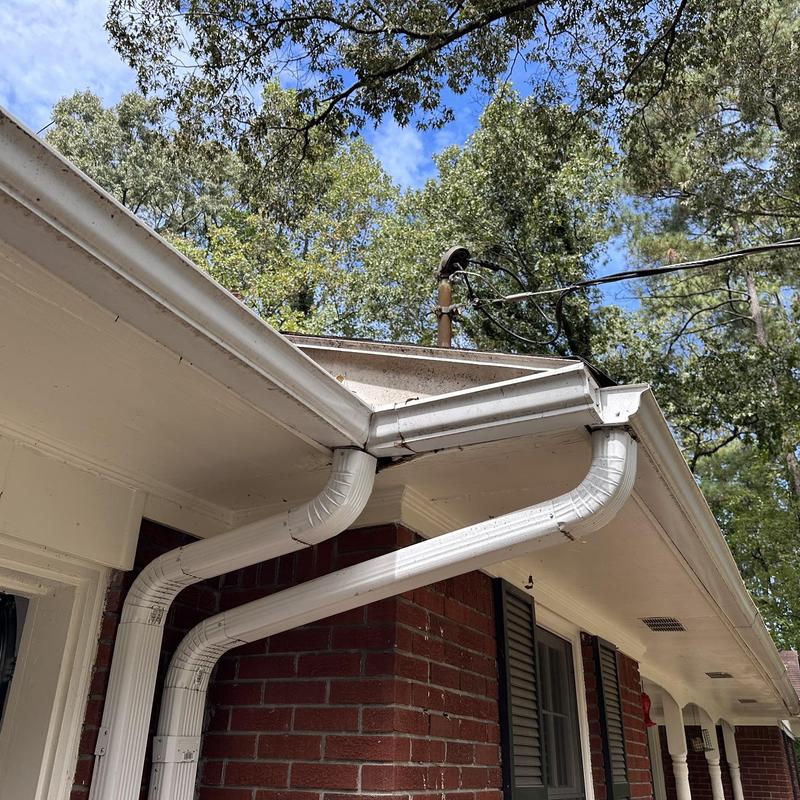 Empire Roofing and Restoration inspected a property in Marietta, Georgia to take measurements for a gutter replacement. The team assessed the existing system to prepare for the upcoming installation work.