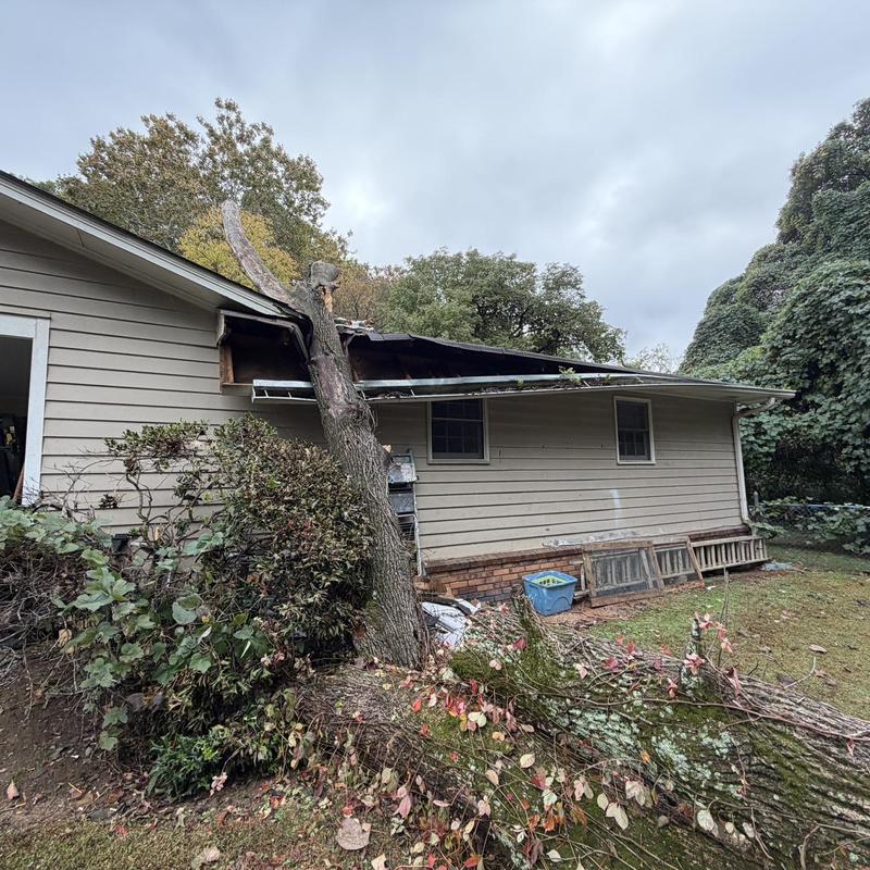 Empire Roofing and Restoration repaired structural framing, roofing, soffit, fascia, and gutters damaged by a fallen tree in Marietta, Georgia. The team restored each affected area to ensure stability and weather protection.