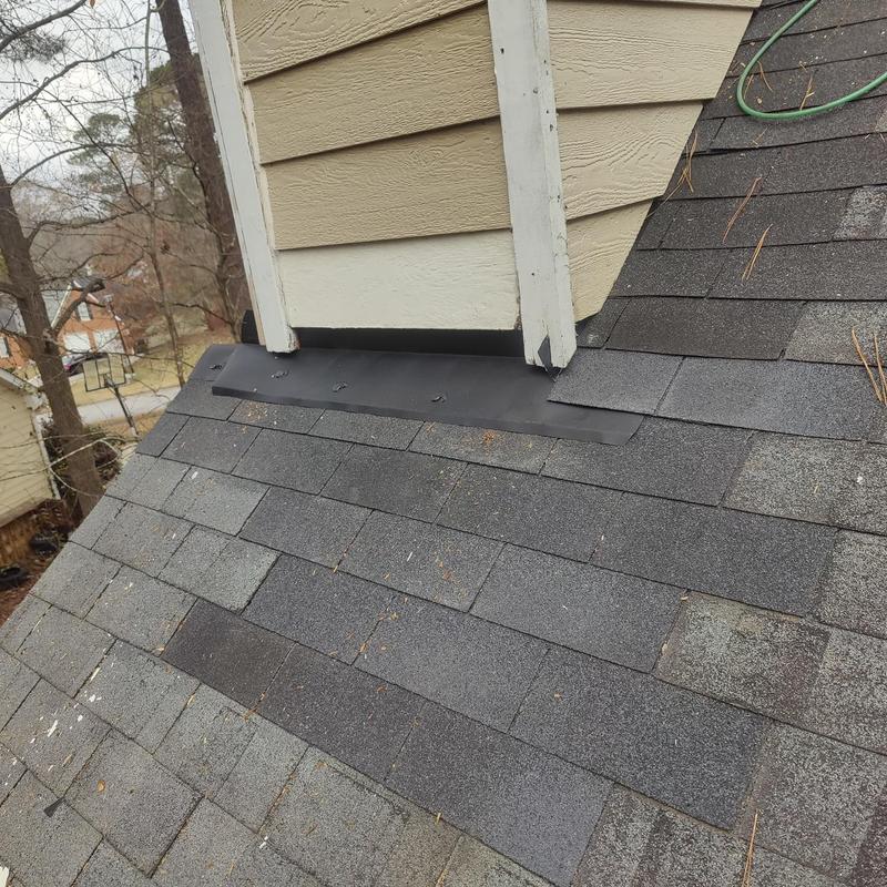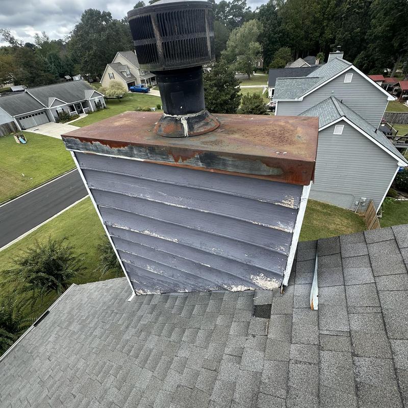 Empire Roofing and Restoration re-flashed 12 feet of chimney, replaced damaged chimney siding, and caulked all mechanical connections in Buford, Georgia. This service improved chimney protection and sealed vulnerable exterior areas.