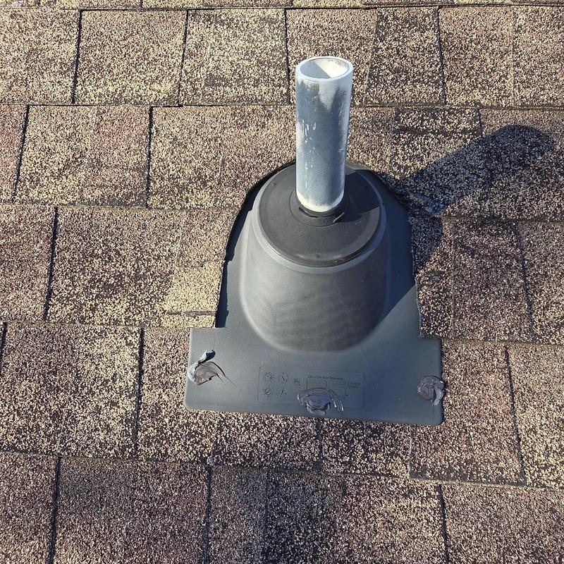 Empire Roofing and Restoration inspected a roof in Marietta, Georgia. They identified a leak near a vent stack and submitted a report with an estimate to re-shingle the area and install ice and water shielding around the vent stack.