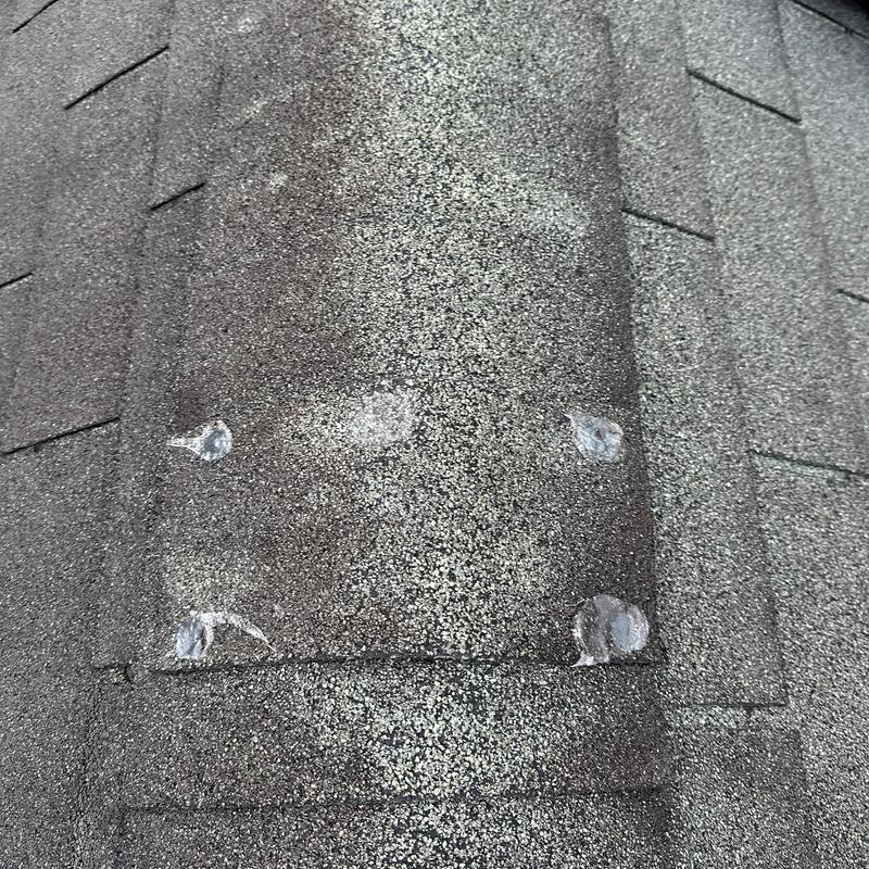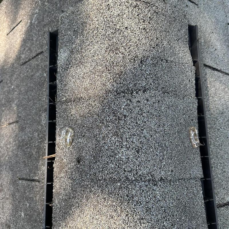 Empire Roofing and Restoration inspected a roof in Suwanee, Georgia. The team identified deteriorating sealant on mechanical components and ridge cap nails. They applied fresh caulk to all affected areas to improve weather resistance and extend roof performance.