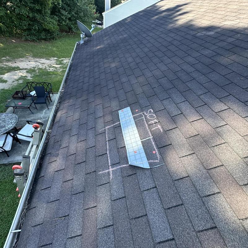 Empire Roofing and Restoration repaired a roof in Conyers, Georgia. The team located a leak caused by an unsealed satellite dish bracket. They applied a tarp, replaced damaged decking and shingles, and sealed mechanical components to stop water intrusion and restore roof integrity.