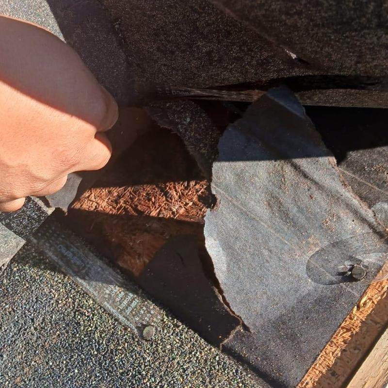 Empire Roofing and Restoration repaired a roof in Snellville, Georgia. The team replaced damaged decking and shingles due to a leak caused by a nail pop and blistering. They also removed and replaced two gutter sections, totaling 40 feet, that had pulled away from the structure.