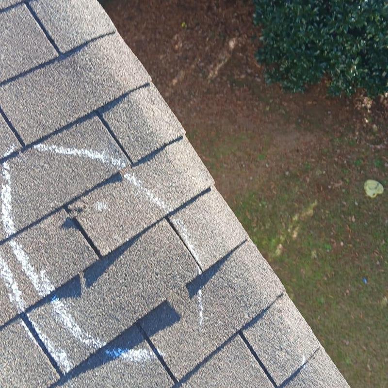 Empire Roofing and Restoration inspected a roof in Loganville, Georgia. Technicians identified about 10 damaged shingles and applied a temporary tarp to prevent water intrusion, ensuring protection until permanent repairs can be performed.