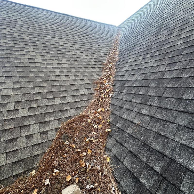 Empire Roofing and Restoration cleared roof valleys in Kennesaw, Georgia, to prevent pest issues caused by debris buildup. The team inspected the roof and confirmed there was no visible damage after cleaning.