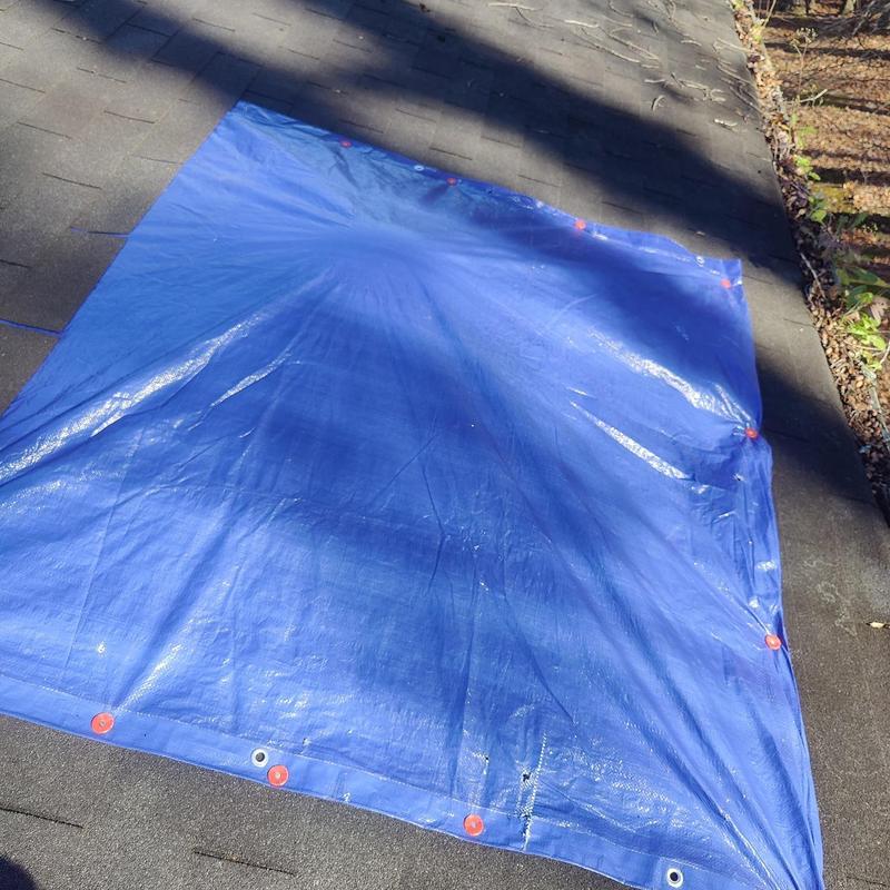 Empire Roofing and Restoration inspected a Snellville, GA roof for leaks on December 12, 2025, applied tarps over identified holes to prevent water damage, and cleared debris to ensure accurate assessment and prolong roof lifespan.