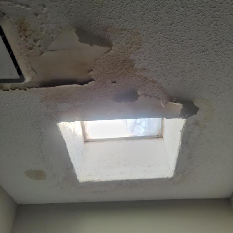 Empire Roofing and Restoration inspected a bathroom in Newnan, Georgia, for mold and mildew. The issue was limited to surface growth and not related to the roof, which was replaced eight months ago. A mildew specialist was recommended to evaluate and treat the affected ceiling area.